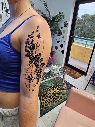 At Paradise Beach Henna we offer Henna Tattoo, Hair Wrap, Hair Feathers, Hair Tinsel, and Hair Braiding services, for your complete beach experience! We offer a wide variety of styles and selections at the cheapest prices in town GUARANTEED! 2 for 1 specials, group discounts, and we do parties at a flat inexpensive rate. Prices are negotiable.