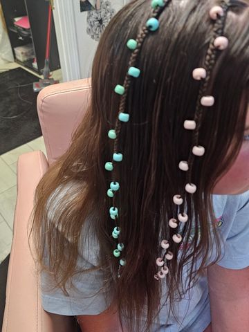 Beaded Braids. Single braid with beads on each side. Very cute!